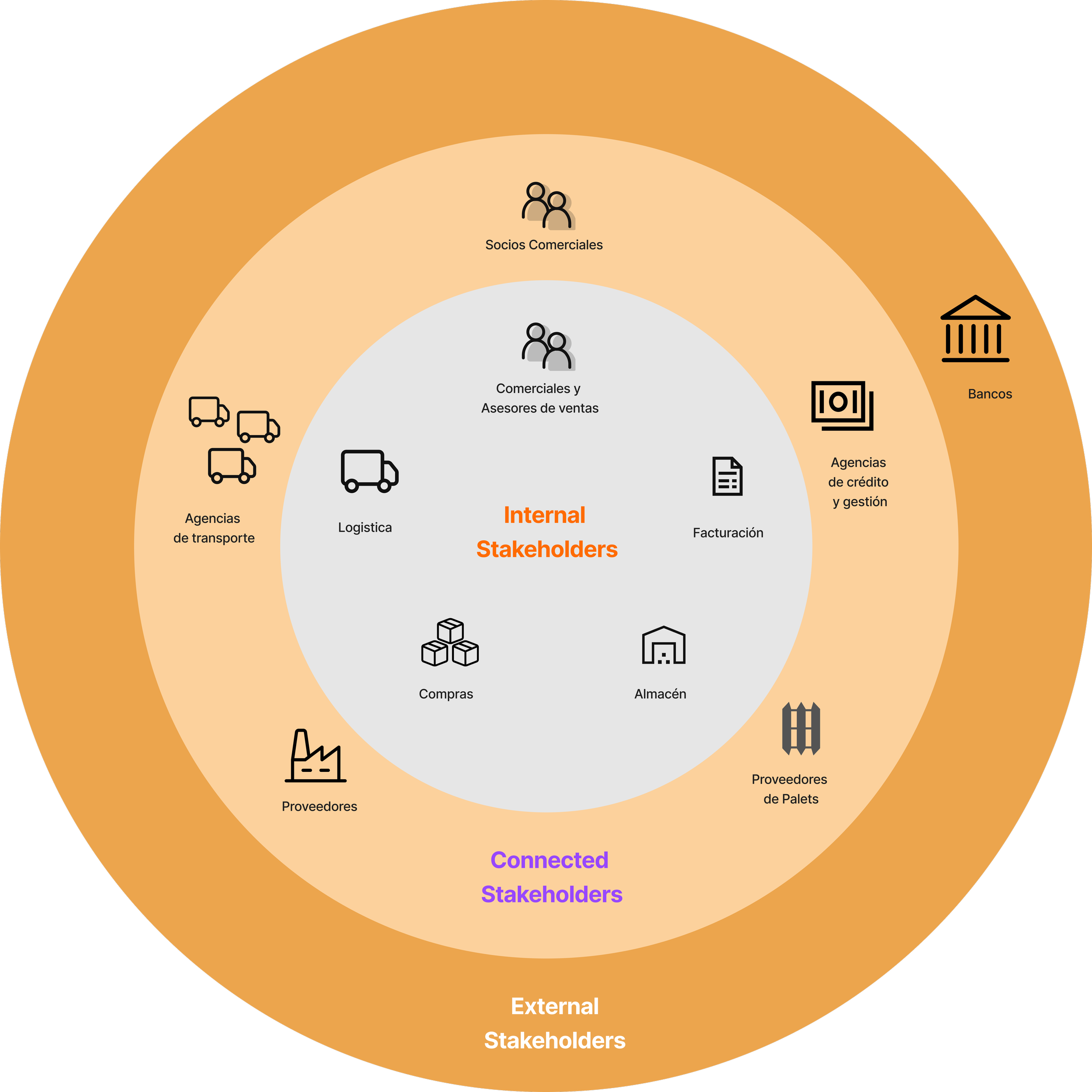 Entrevistamos a 6 personas de diferentes departamentos de la empresa, todas con experiencia en distintos puntos de interacción entre los usuarios y el producto digital o servicio final: